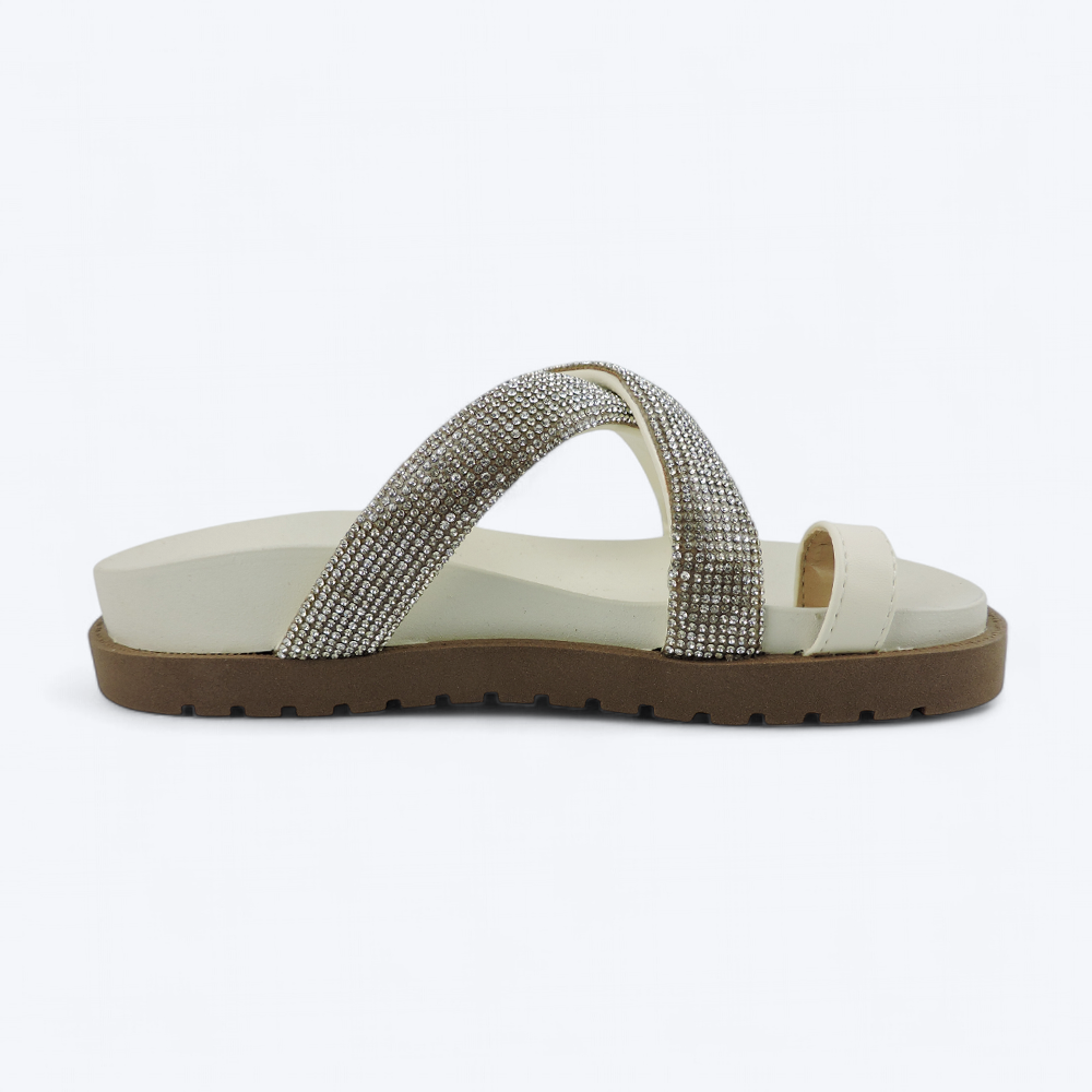 COMPRE JÁ A SUA PAPETE FEMININA BRILHO TIRAS CRUZADAS BAUNILHA