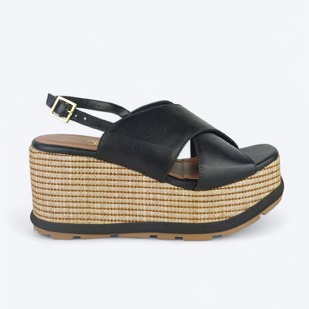 Esta sandália combina elegância atemporal com um toque contemporâneo, tornando-a uma escolha versátil e moderna para diversas ocasiões. Feita em couro de alta qualidade, esta sandália oferece um visual limpo e sofisticado que se adapta facilmente a diferentes estilos e roupas. As tiras cruzadas em forma de X sobre o peito do pé não apenas adicionam um elemento de moda, mas também garantem um ajuste seguro e confortável.