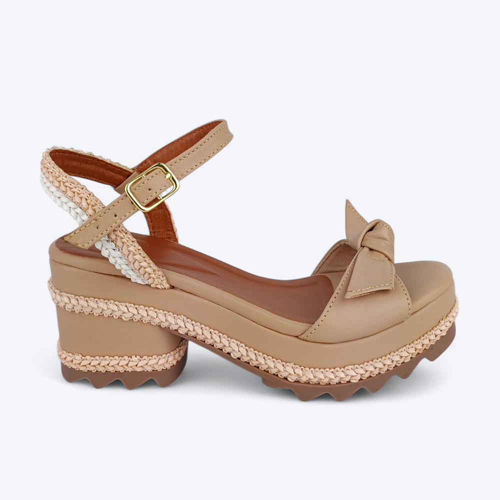 COMPRE JÁ A SUA SANDÁLIA BLOQUINHO EM COURO FIVELA DETALHE EM LAÇO NUDE