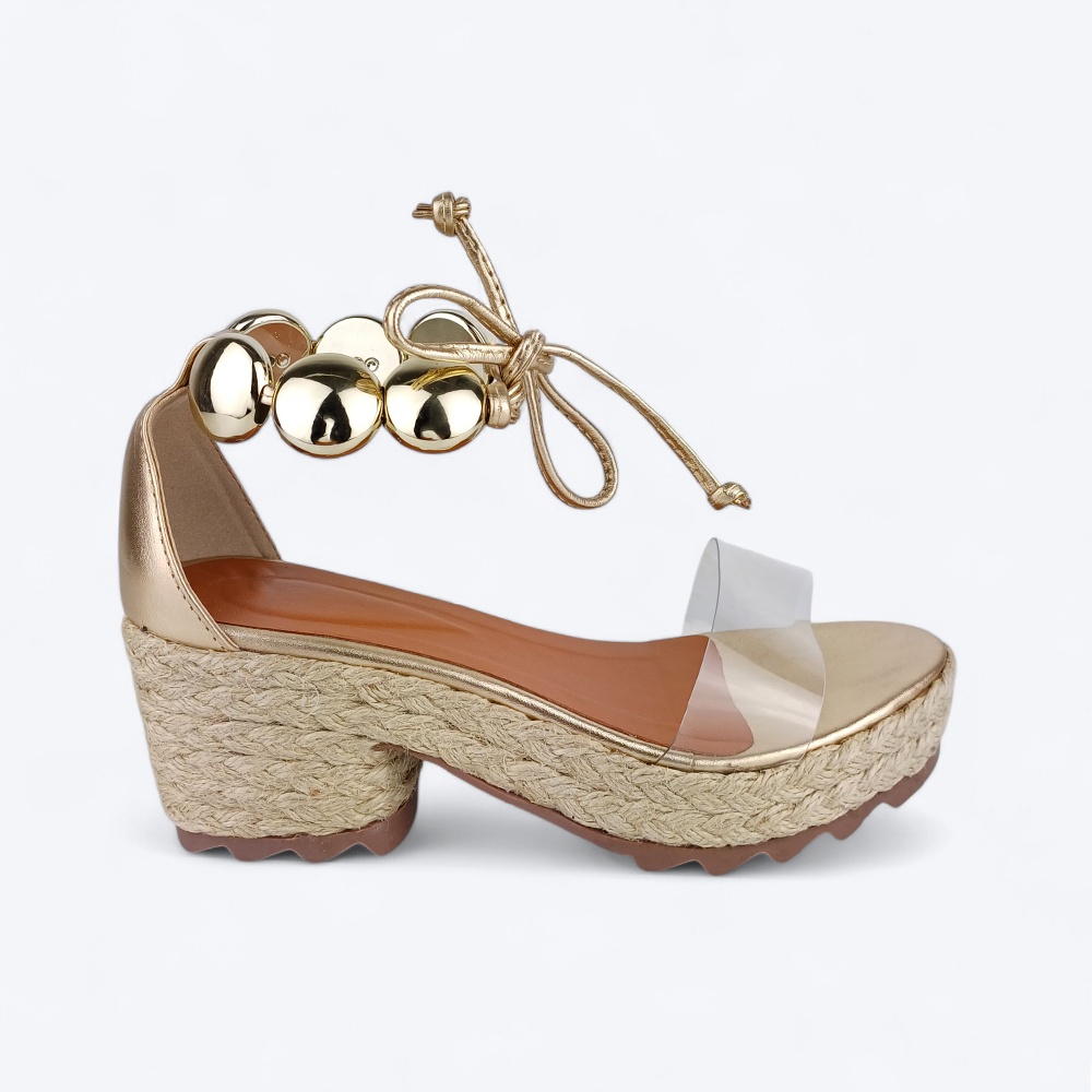 COMPRE JÁ A SUA SANDÁLIA BLOQUINHO VINIL SALTO CORDA BOLA DOURADA