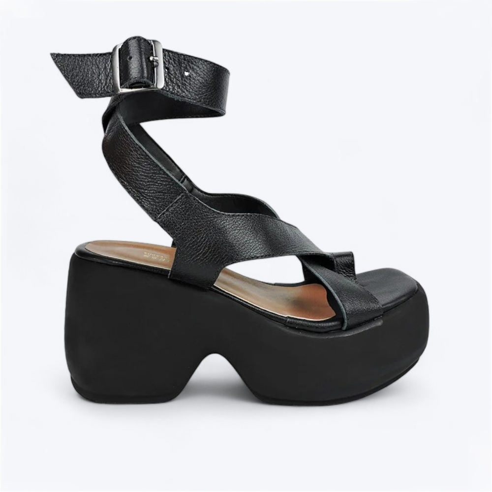 COMPRE JÁ A SUA SANDÁLIA CAMI SALTO PLATAFORMA JESS CALÇADOS EM COURO PRETO