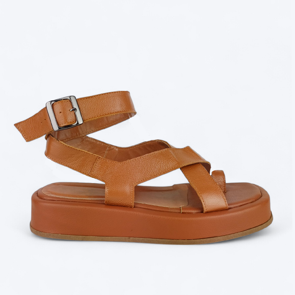 COMPRE JÁ A SUA SANDÁLIA FLATFORM TATÁ TIRAS CRUZADAS EM COURO CARAMELO