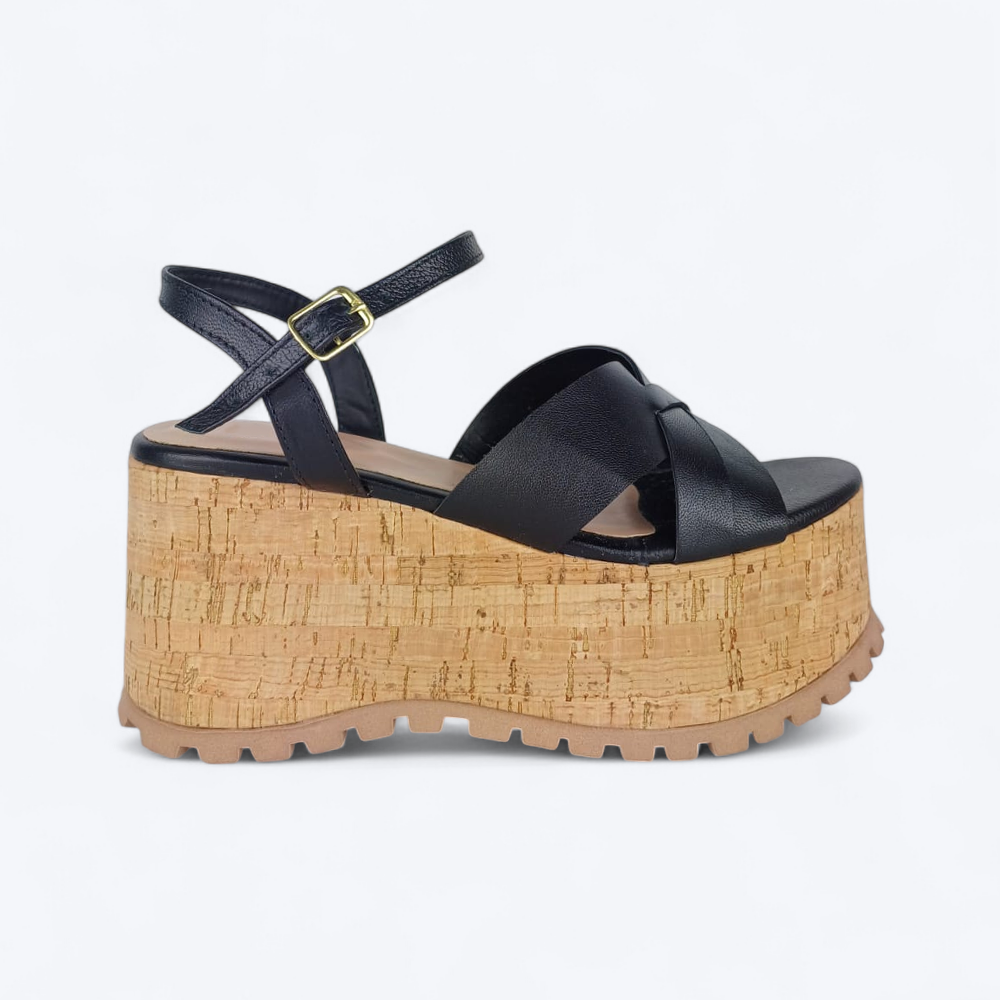 COMPRE JÁ A SUA SANDÁLIA PLATAFORMA ANDRÉIA TIRAS ENTRELAÇADAS EM COURO PRETO