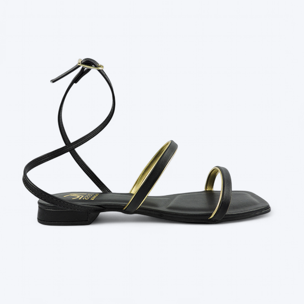 COMPRE JÁ A SUA SANDÁLIA RASTEIRA AURORA PRETA DETALHE EM TIRAS FINAS DOURADA