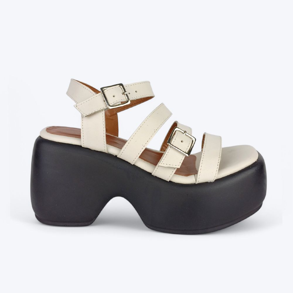 COMPRE JÁ A SUA SANDÁLIA SALTO PLATAFORMA BIANCA EM COURO OFF WHITE