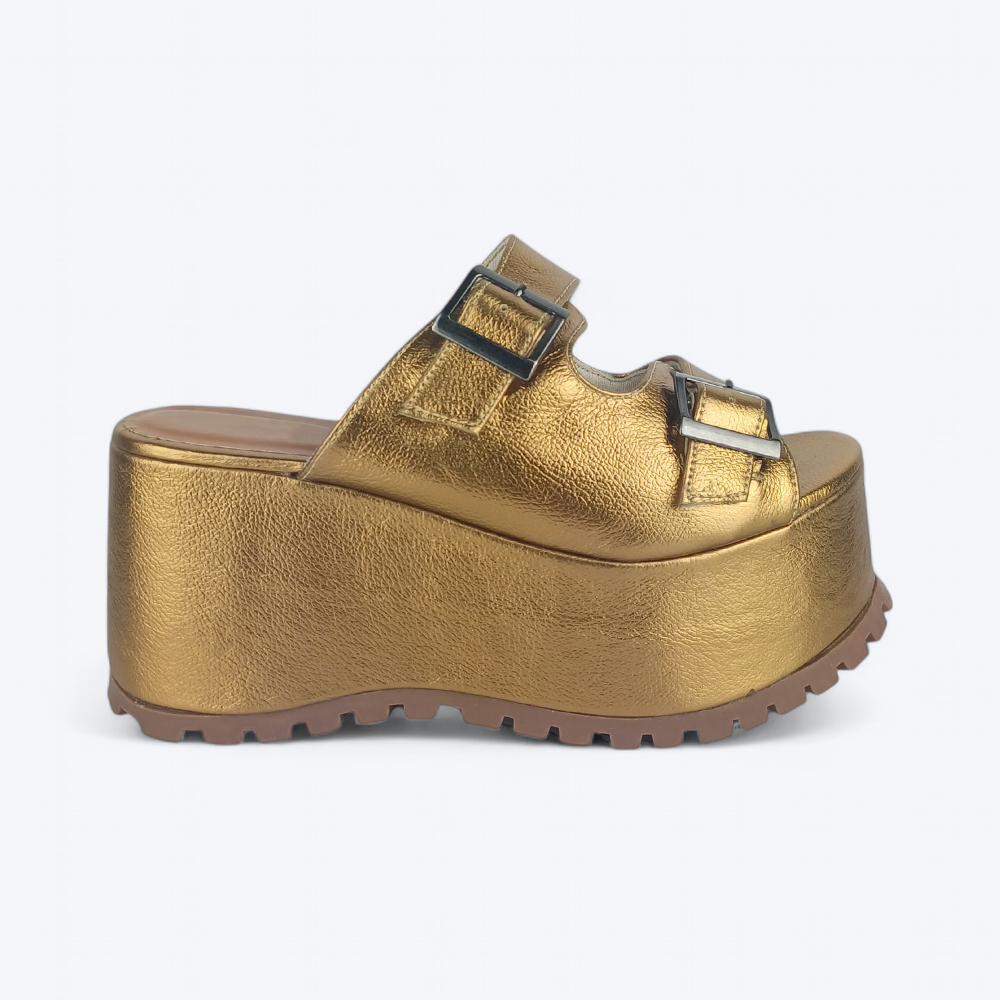COMPRE JÁ O SEU TAMANCO PLATAFORMA LUANA FECHAMENTO EM FIVELAS COURO BRONZE